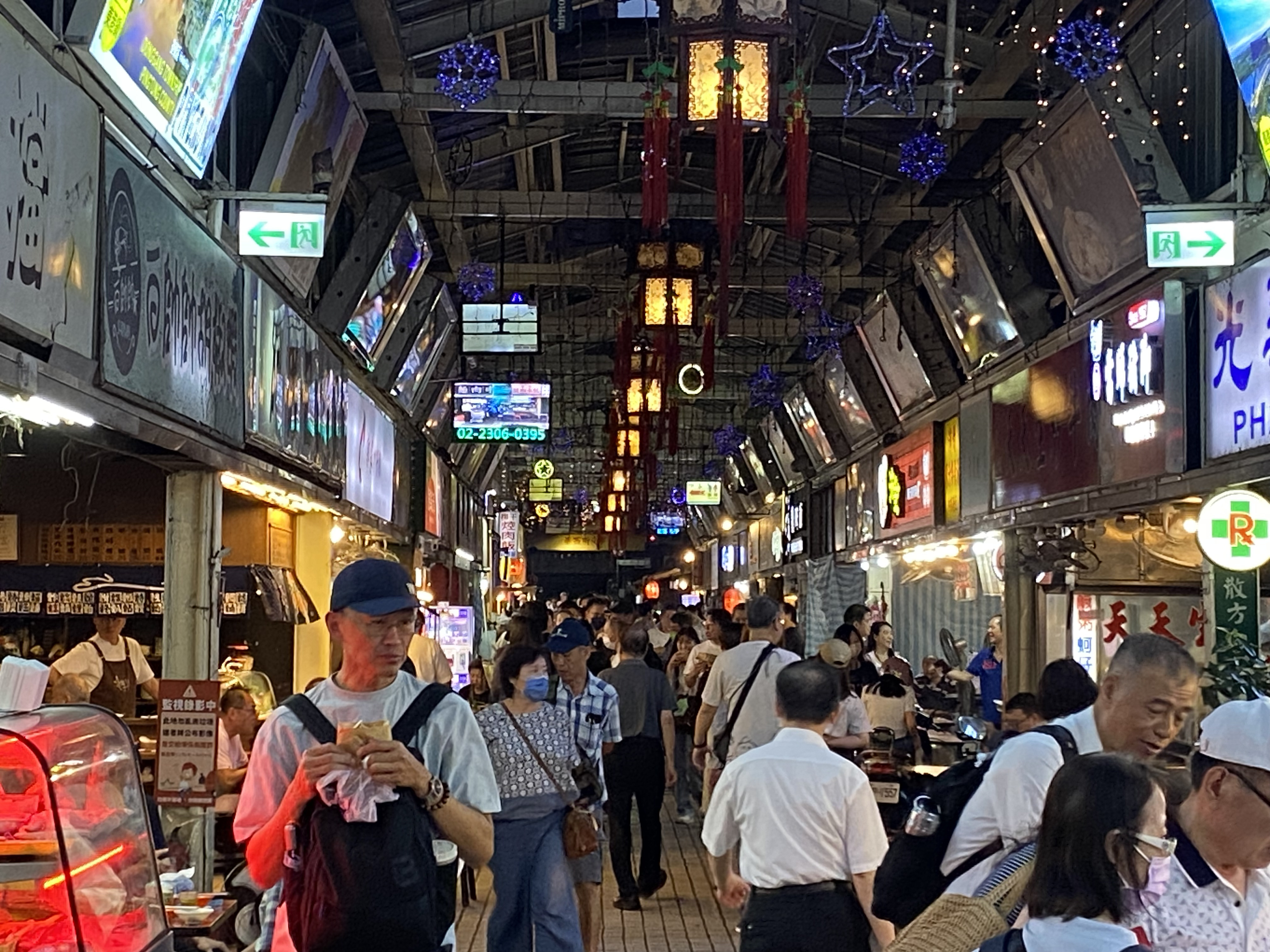 從萬華車站走下 穿梭在華西街夜市 看著人潮湧動